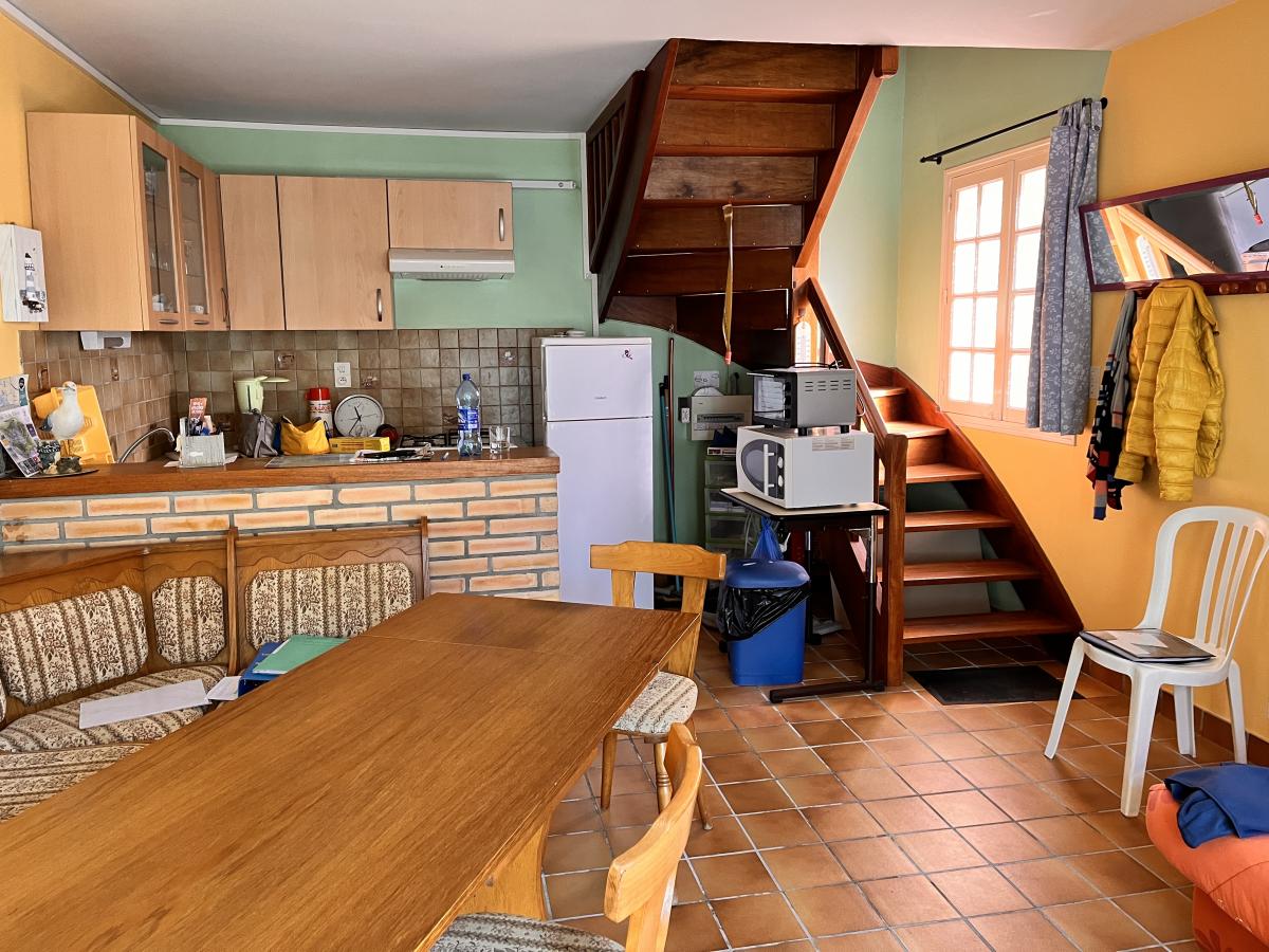 Construction traditionnelle avec logement indépendant de deux pièces. Au rez de chaussée, un séjour double, une cuisine, deux chambres, une salle de bains et un wc. A l'étage, palier desservant quatre chambres, ue salle d'eau et un wc.